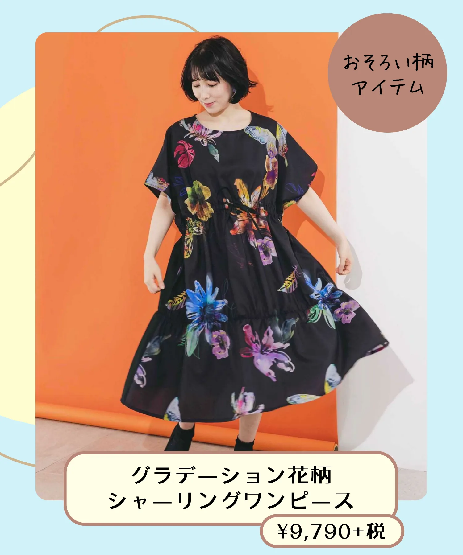 カラフルなグラデーションがキレイな花柄ワンピースは