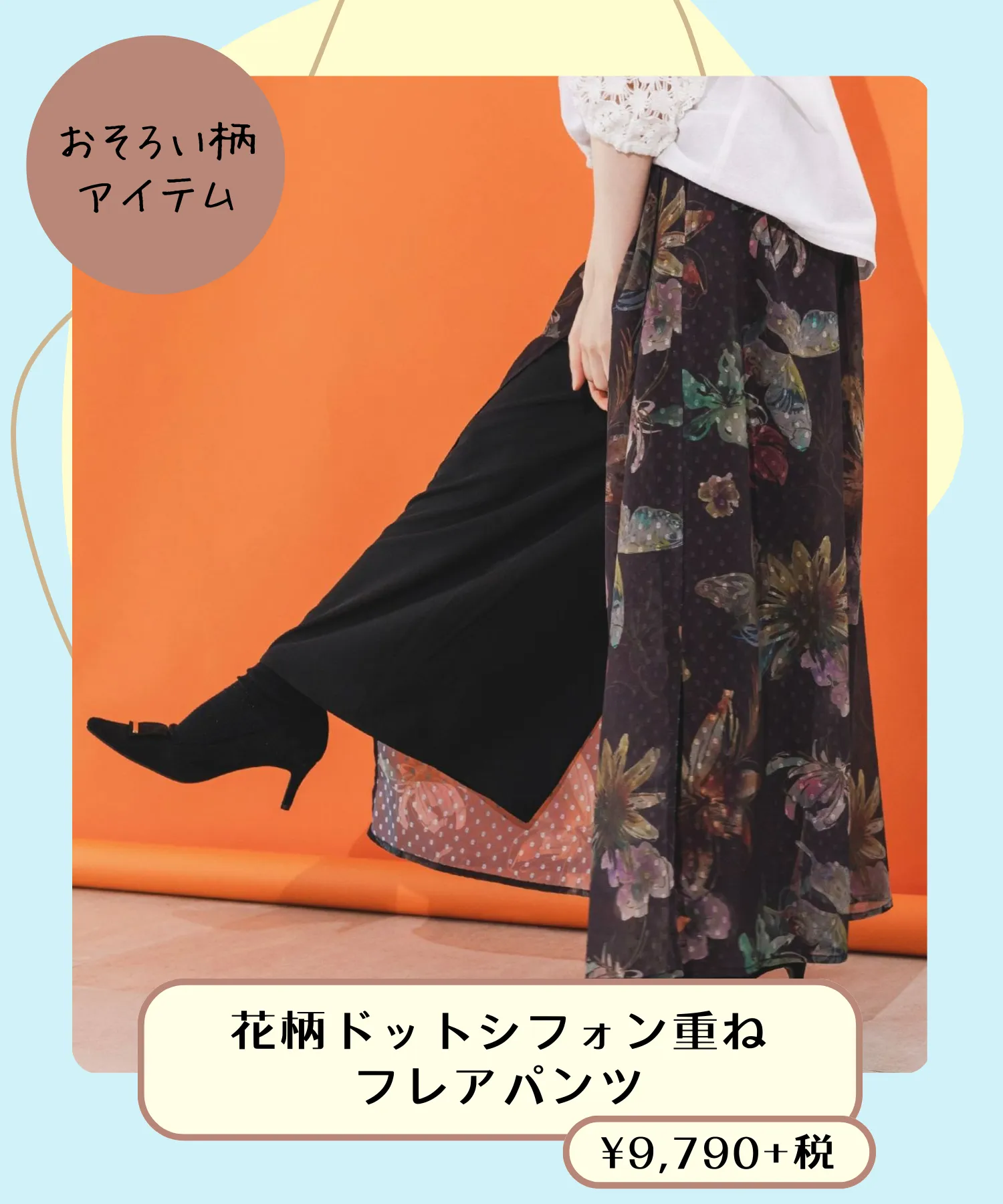 対して落ち着いた色合いのフレアパンツは