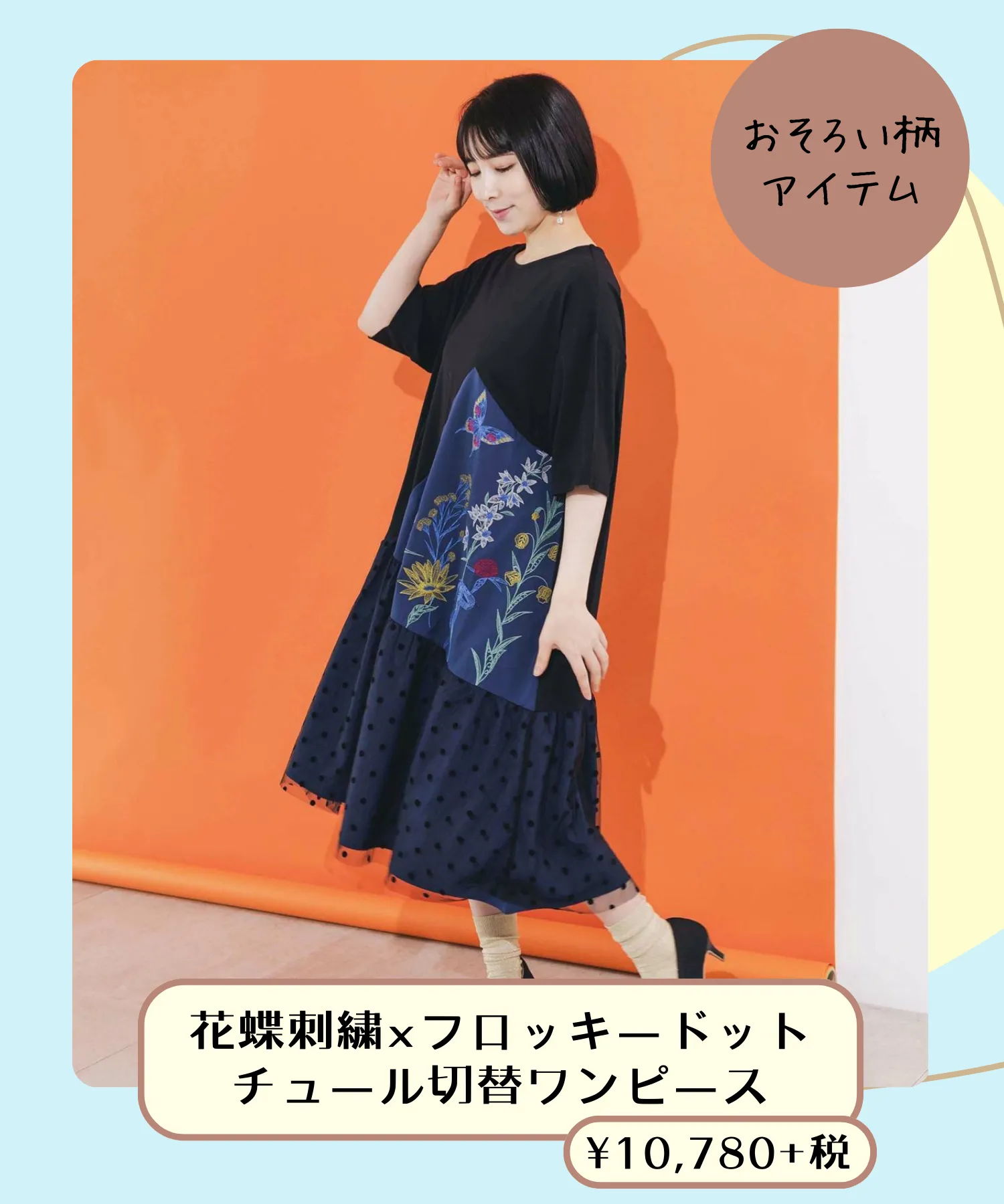 繊細な花と蝶の刺繍にときめくデザイン。