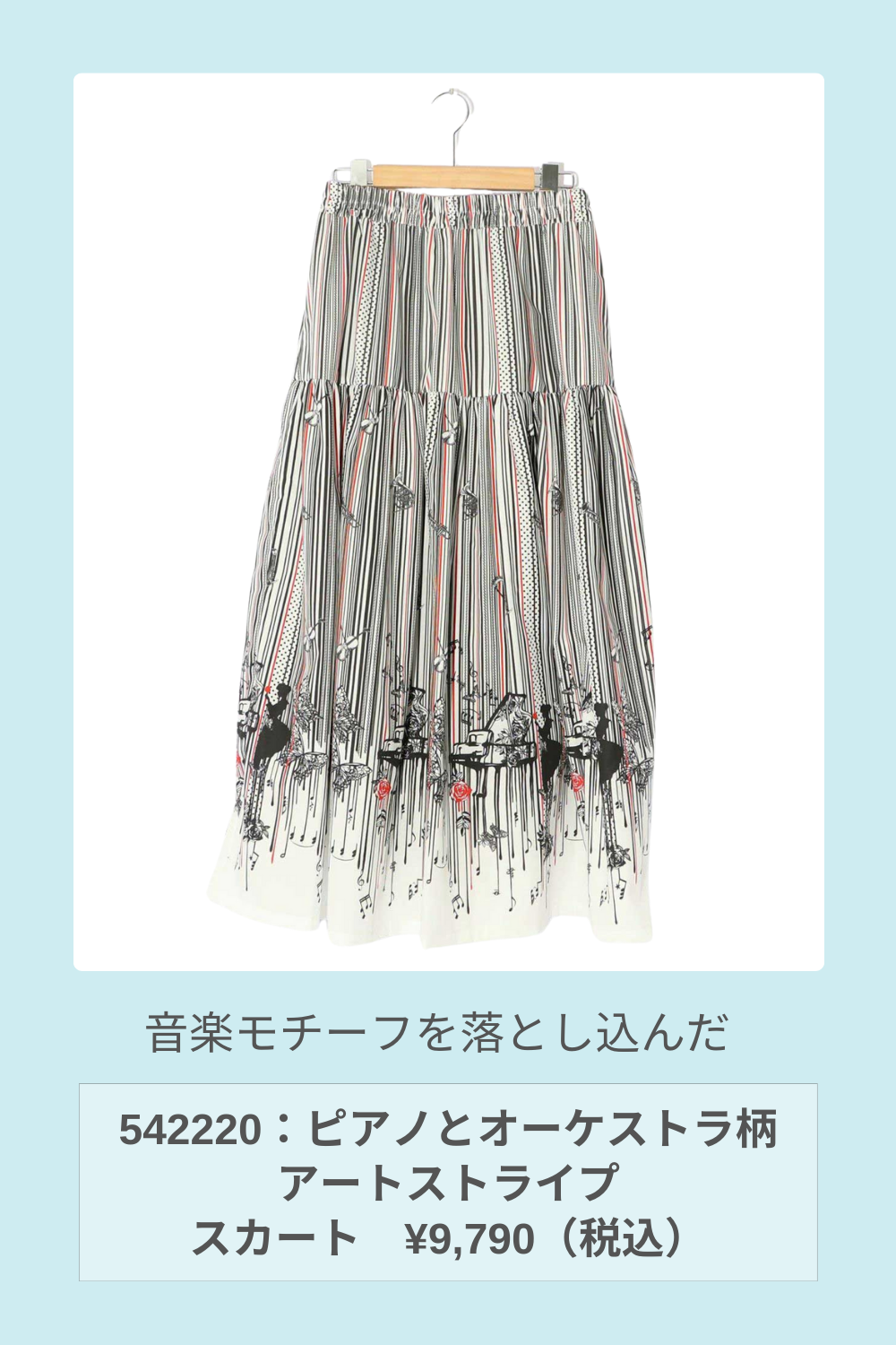 オーケストラ柄のストライプスカートが