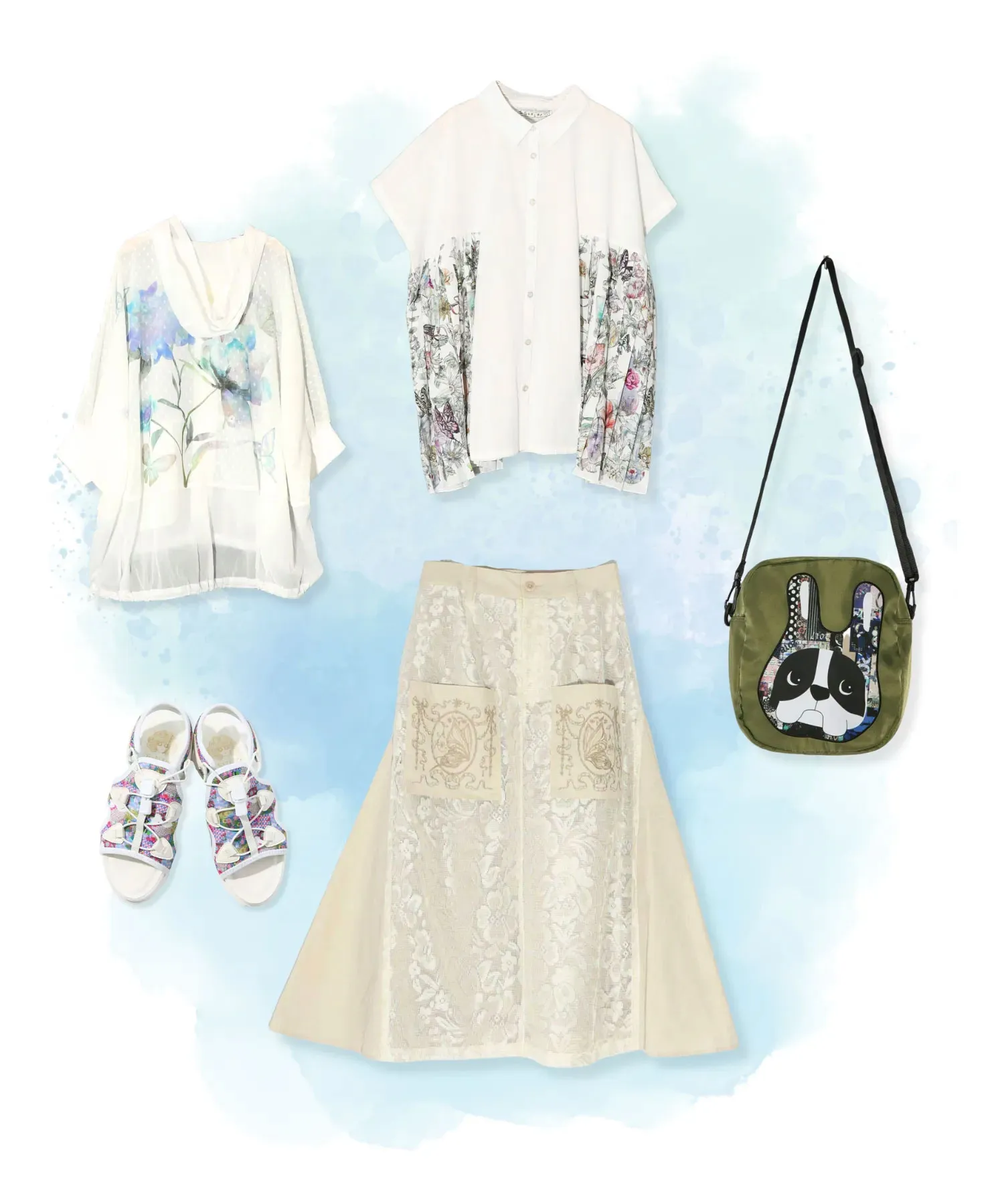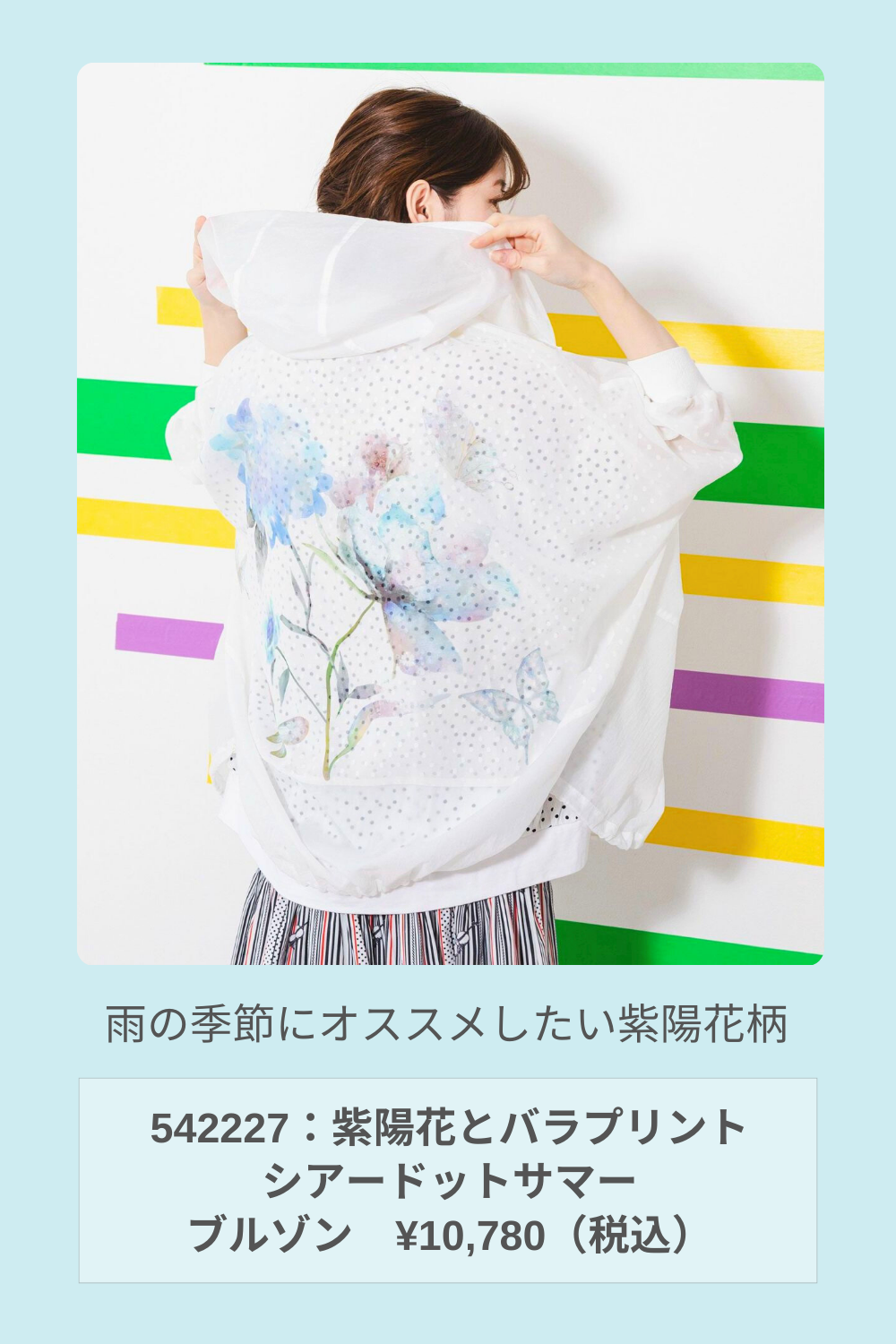 紫陽花とバラのプリントが映えるブルゾンが
