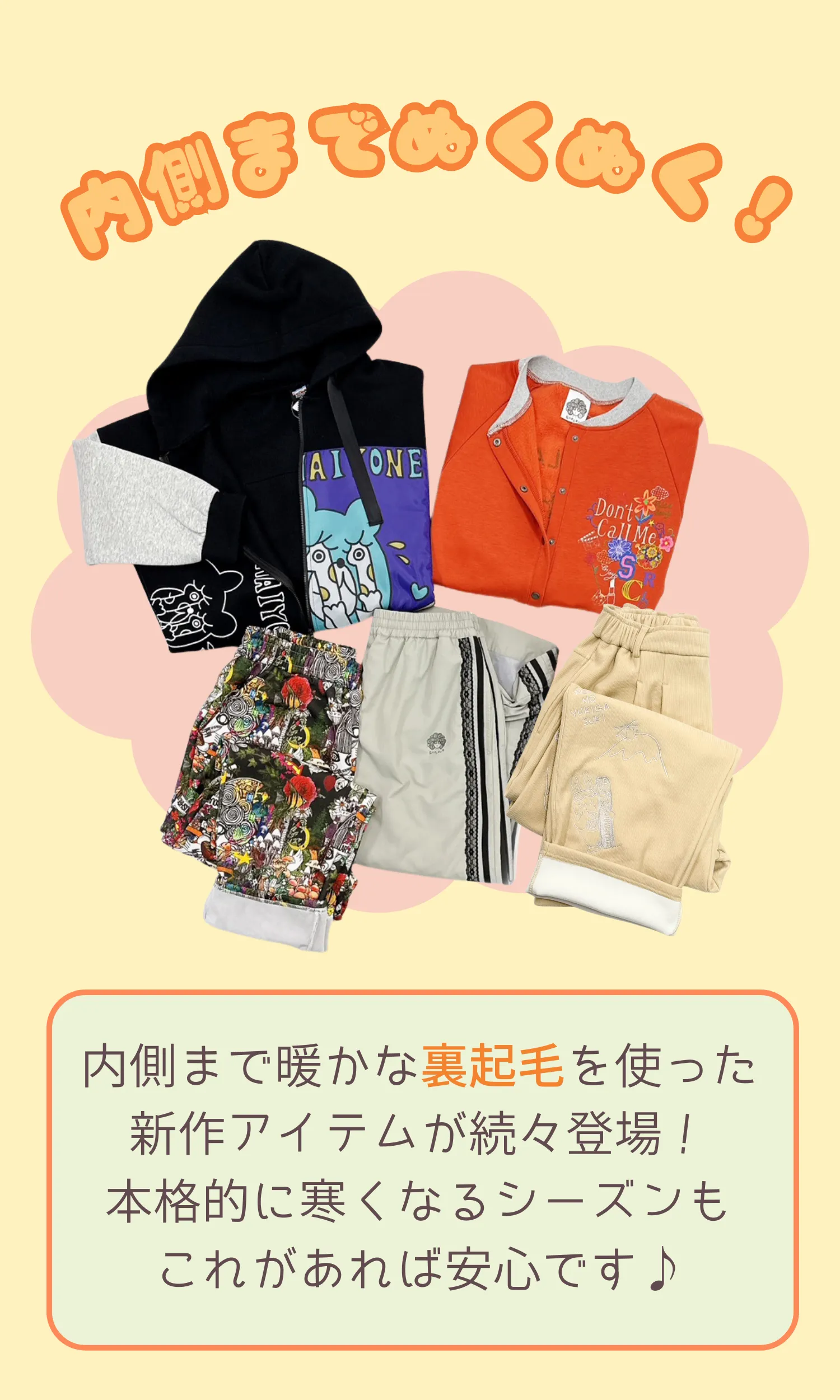 裏起毛で内側までぬくぬく!