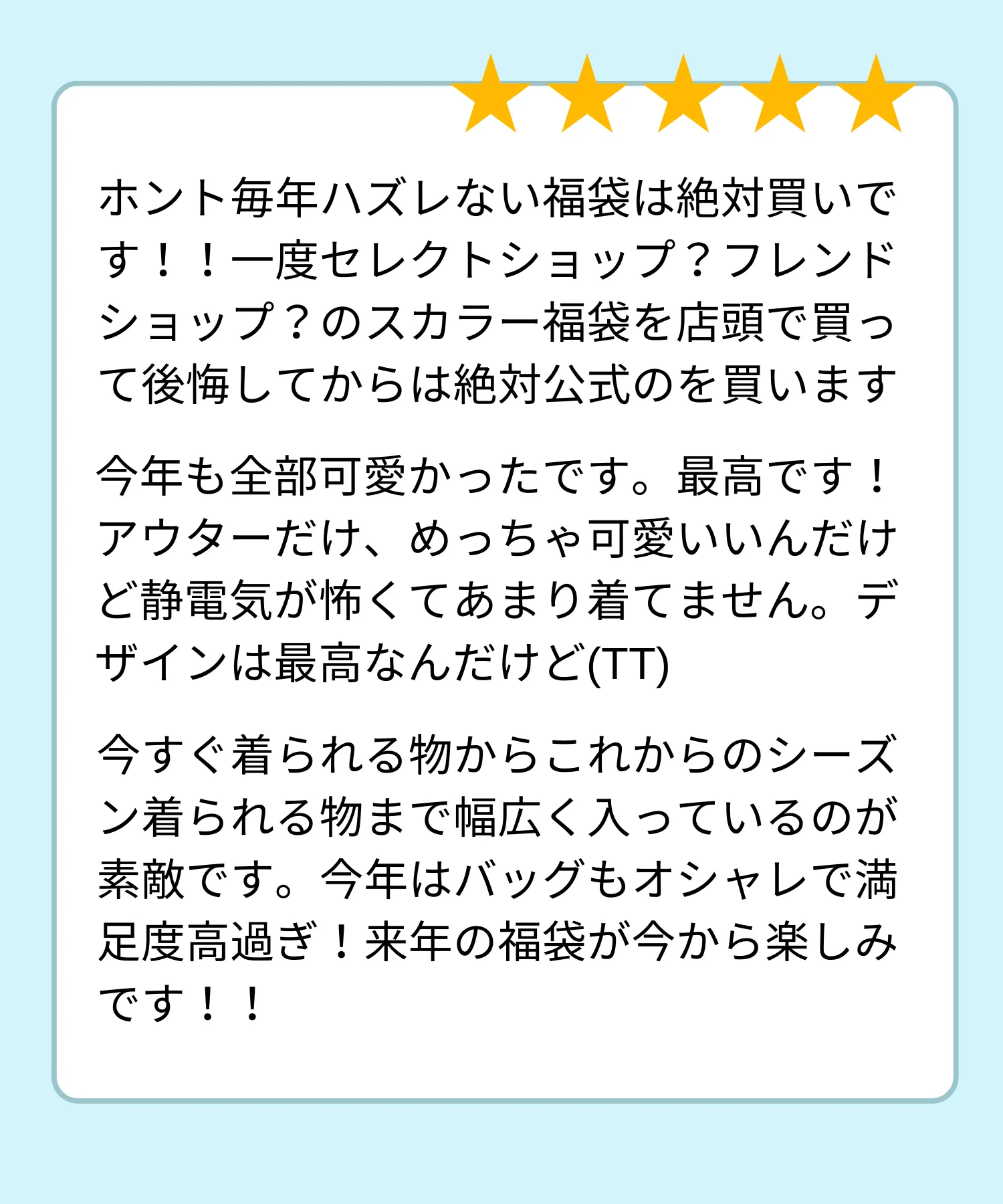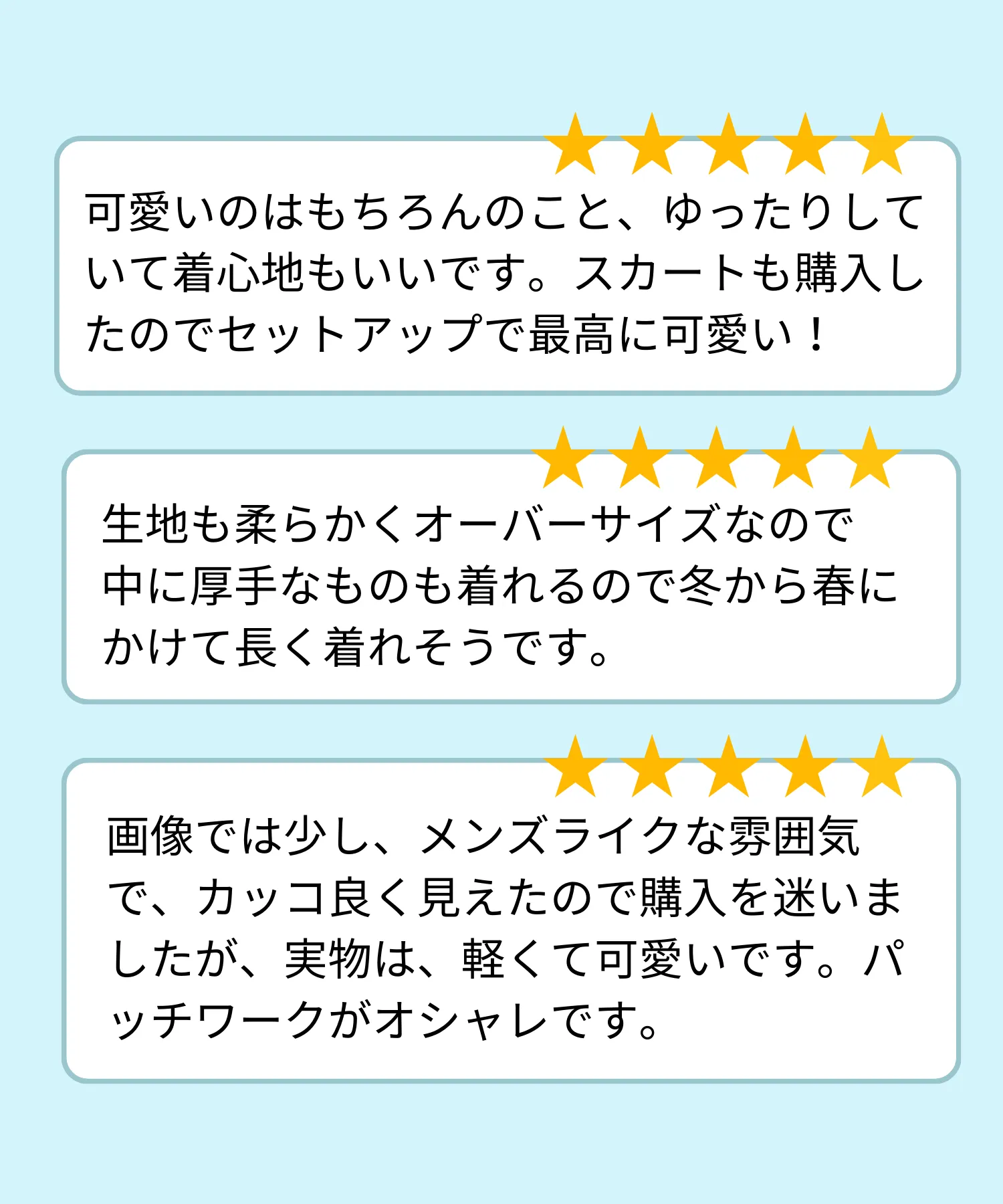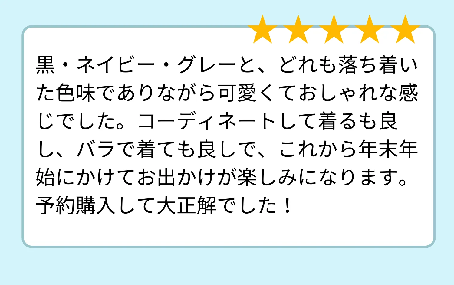 着用感やデザインへのレビューは今後の企画に活かして参りますので以降も、ぜひご感想を頂けますと幸いです。
