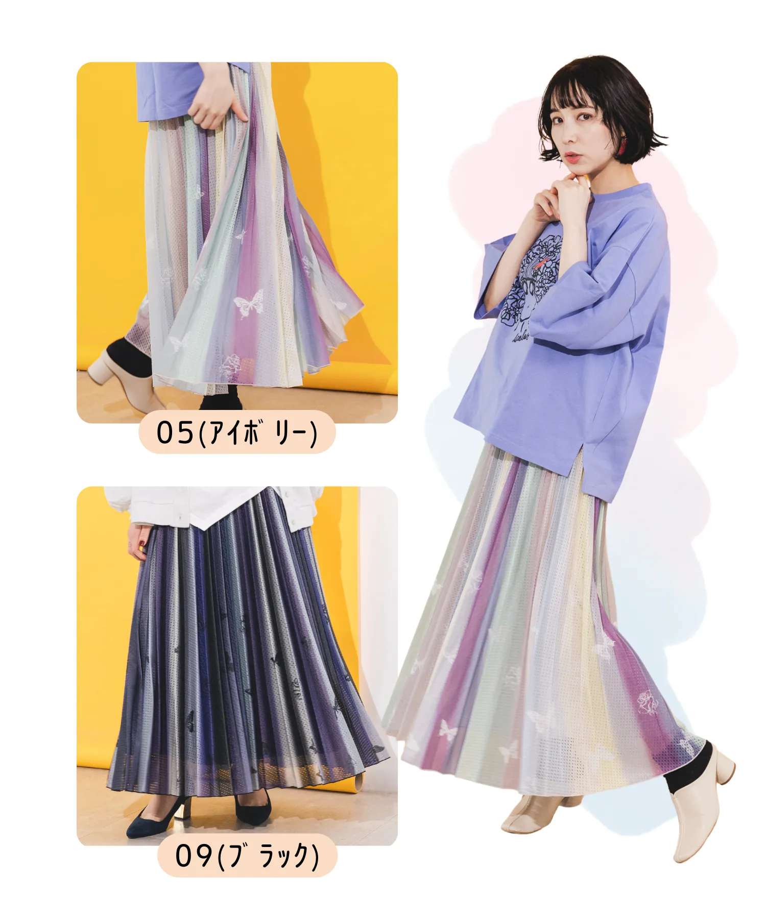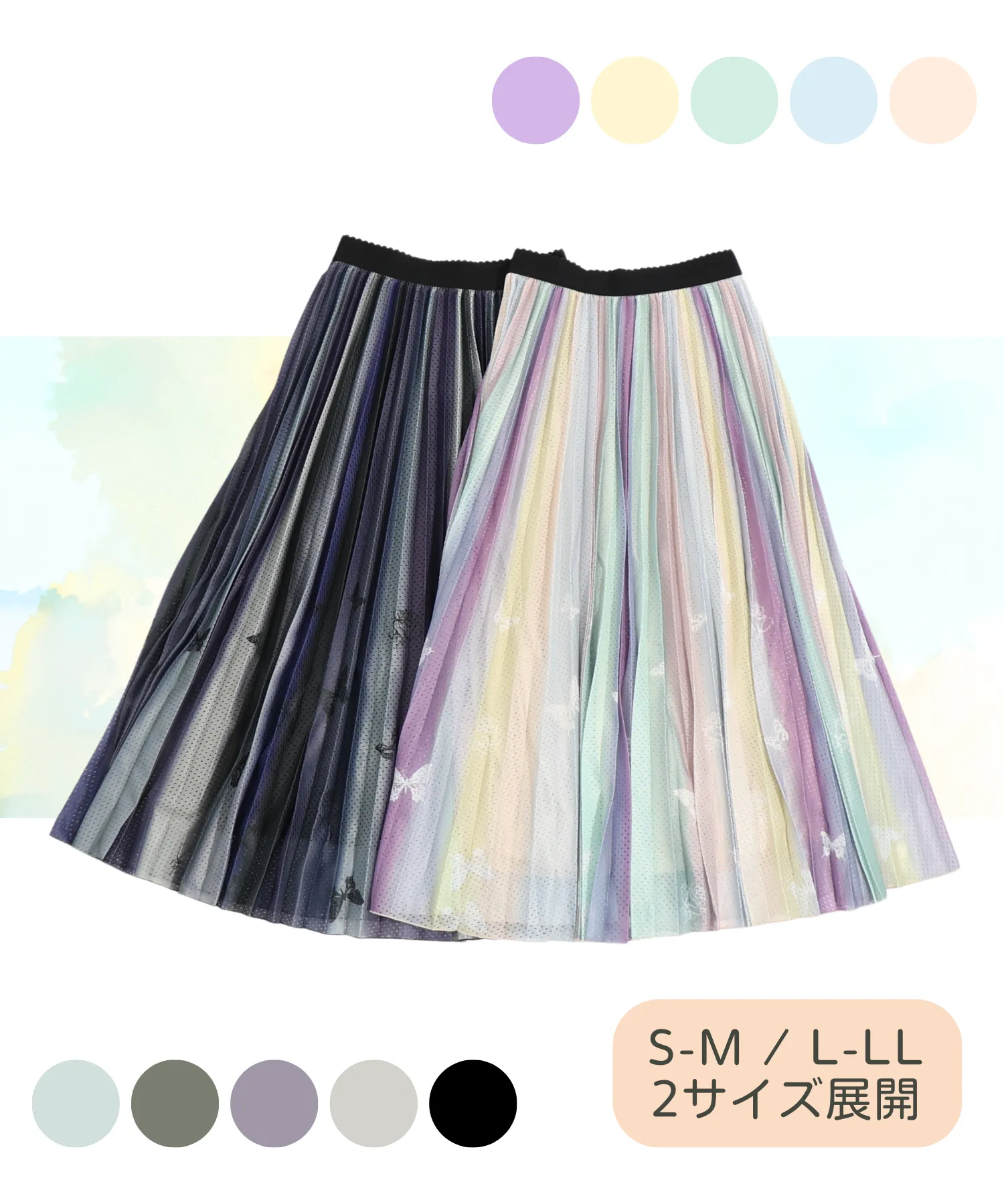●蝶花プリント レインボースカート ¥ 9,900(税込)
