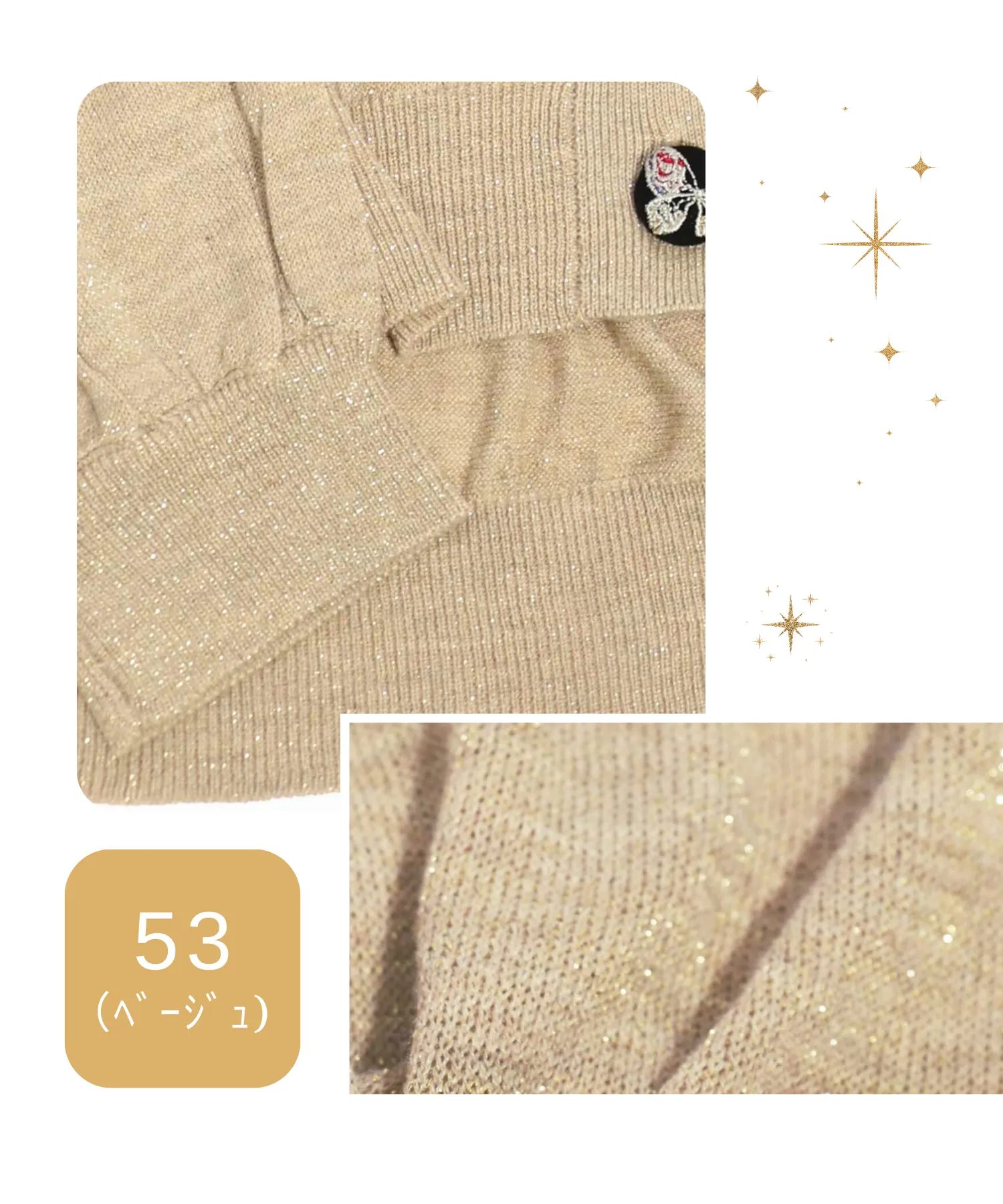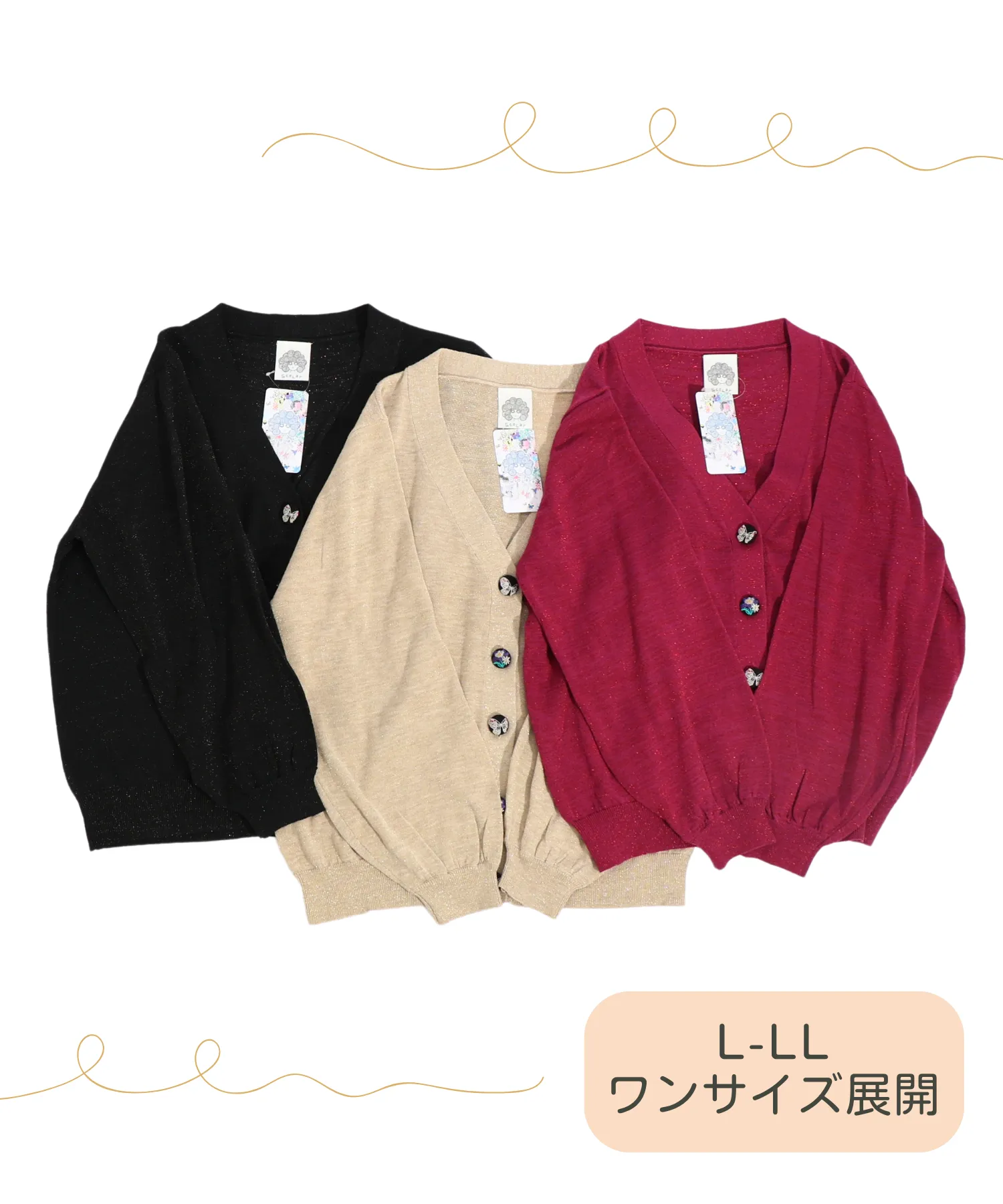 ラメ糸を使用した上品なカーディガンなどを