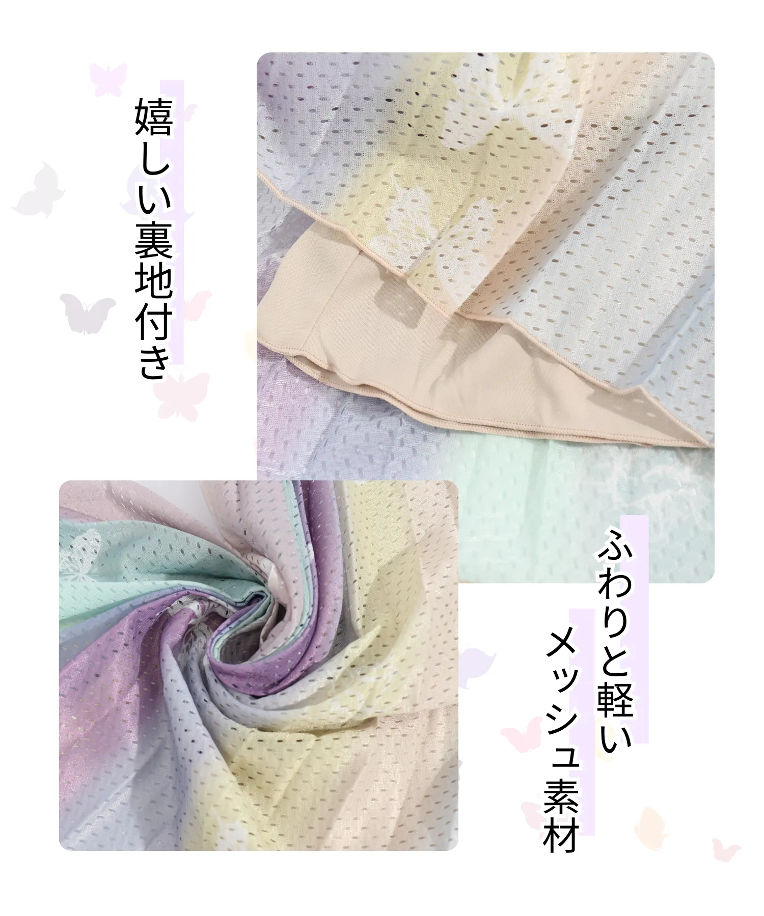 蝶や花の刺繍が施された