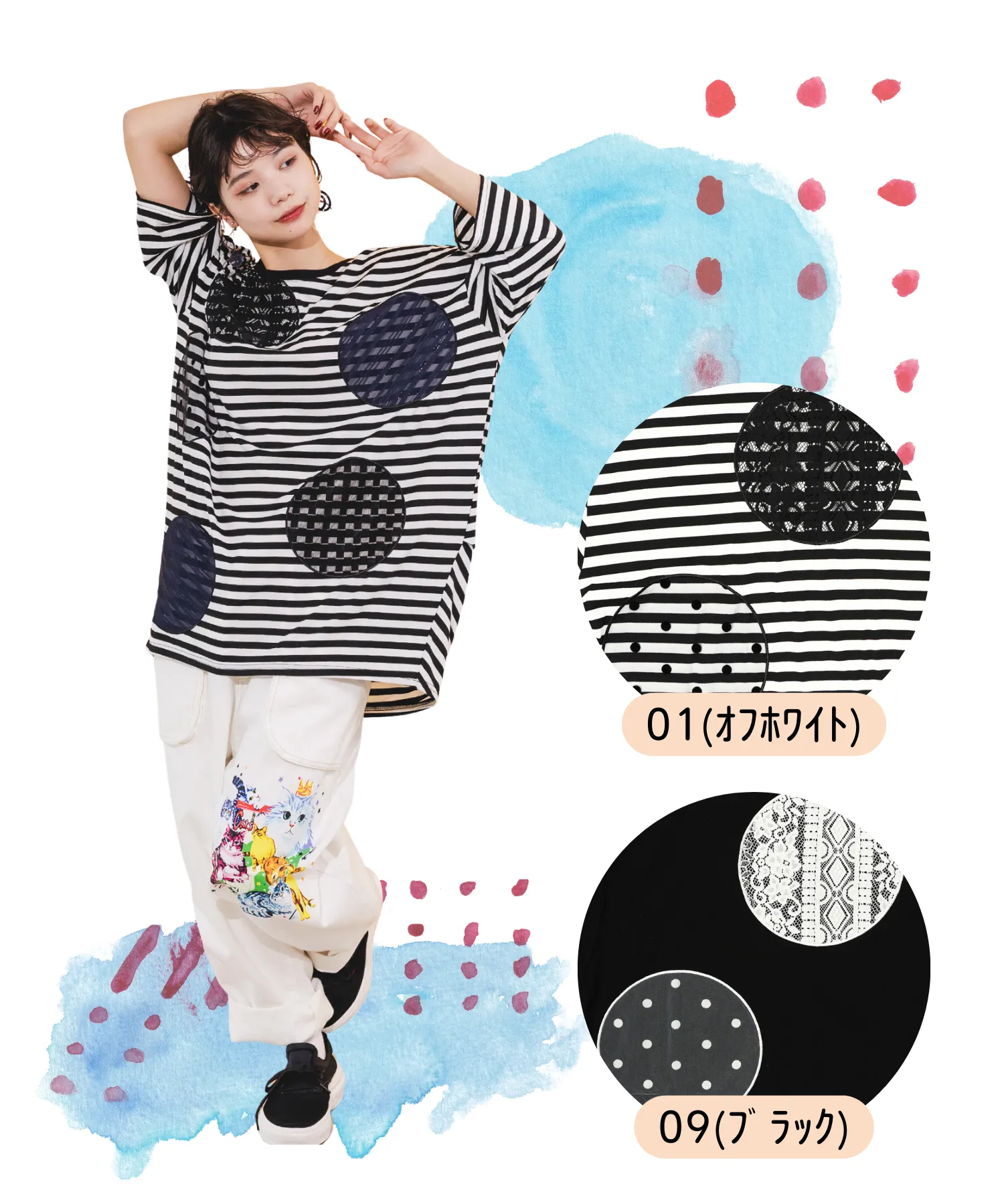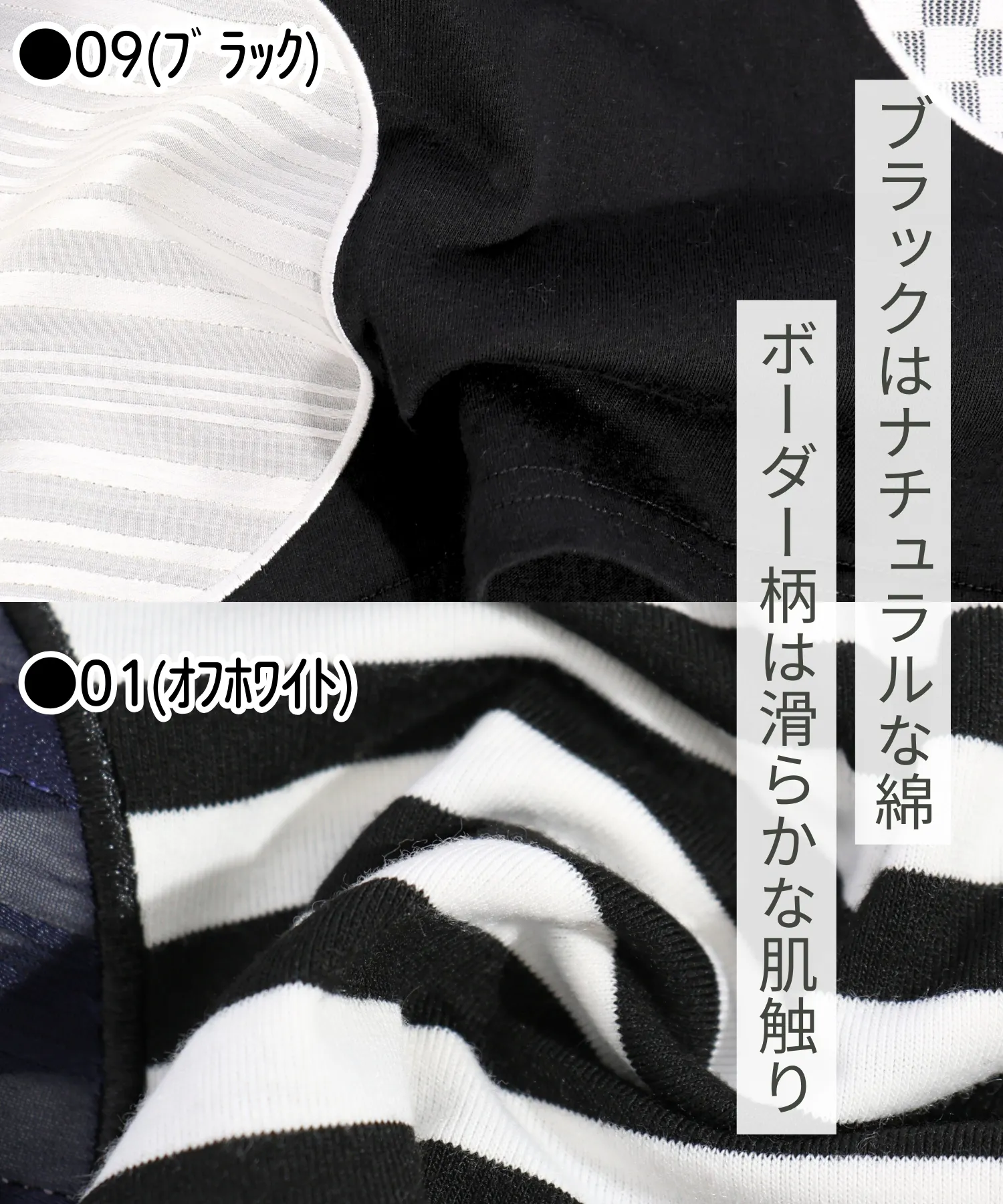 01(オフホワイト)がボーダー柄で滑らかな素材