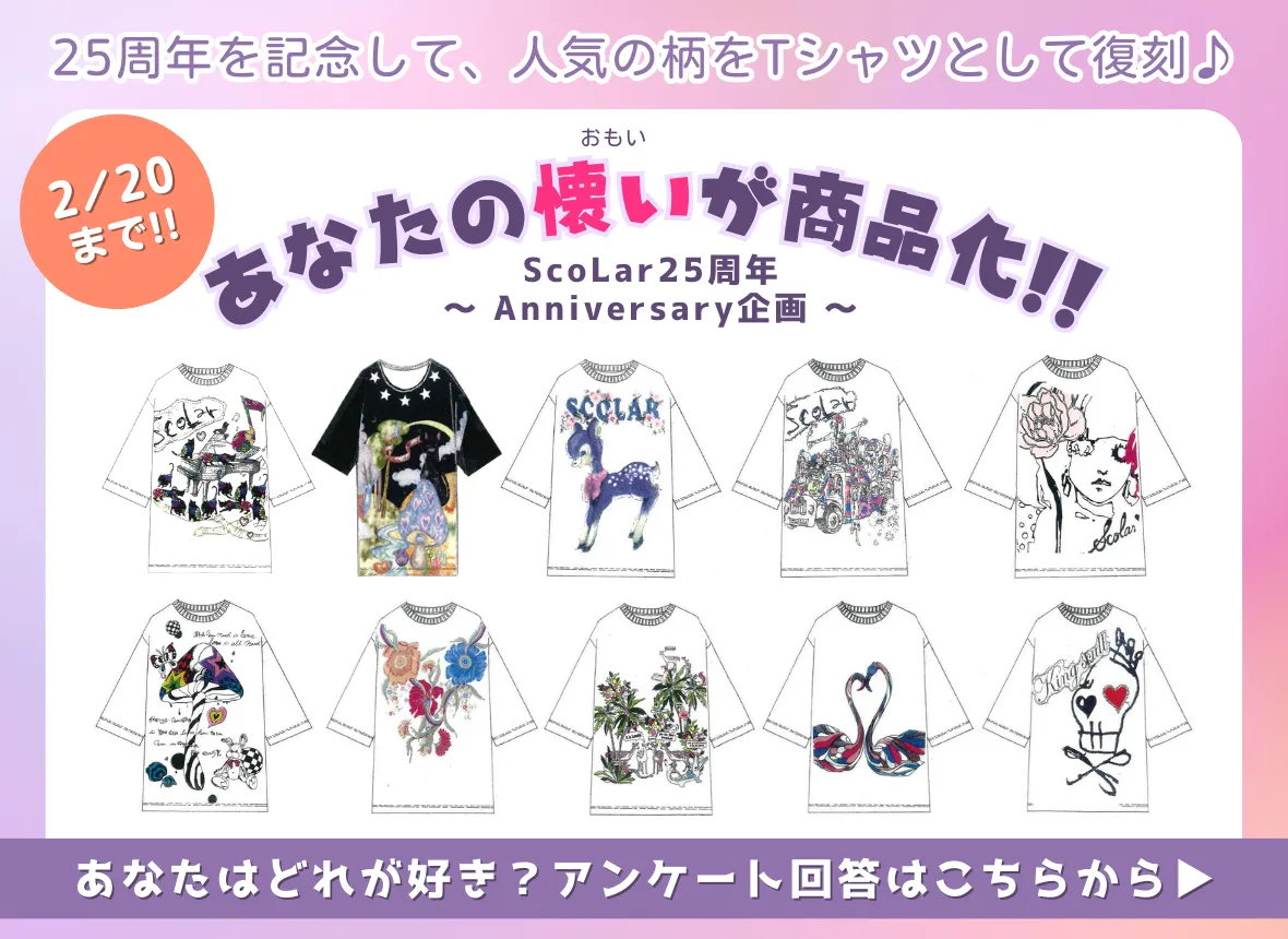 SCOLARのロゴの周りに草花をあしらった、